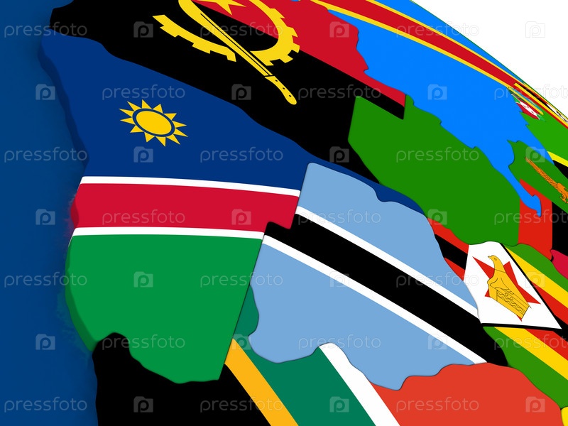 Намибия и Ботсвана на карте с флагами