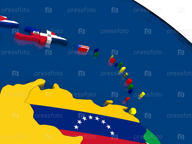 Южные Карибы на карте с флагами