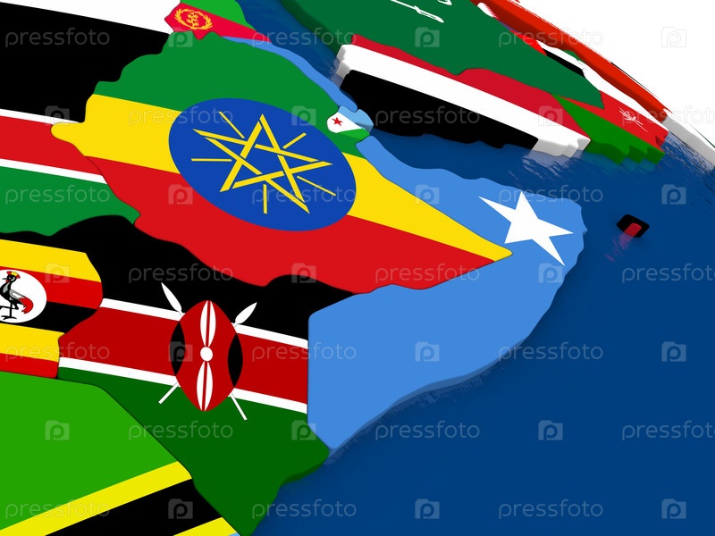 Сомали и Эфиопии на карте с флагами