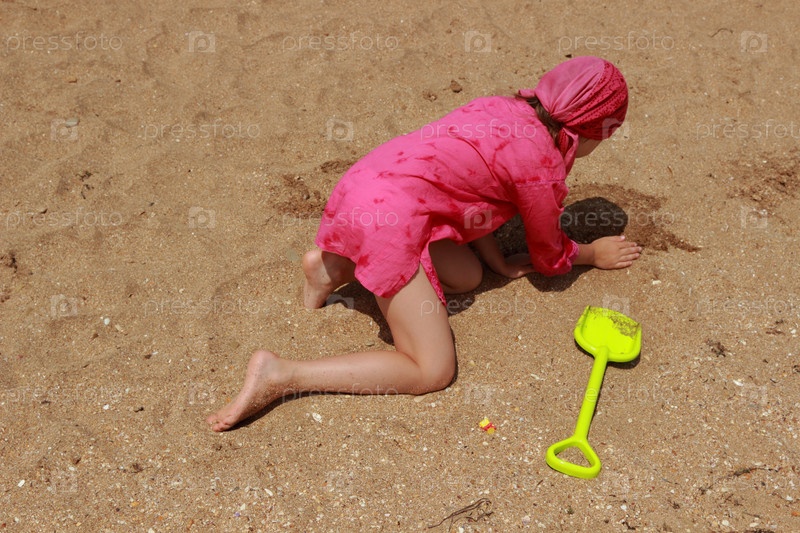 Маленькая девочка носить играет на пляже