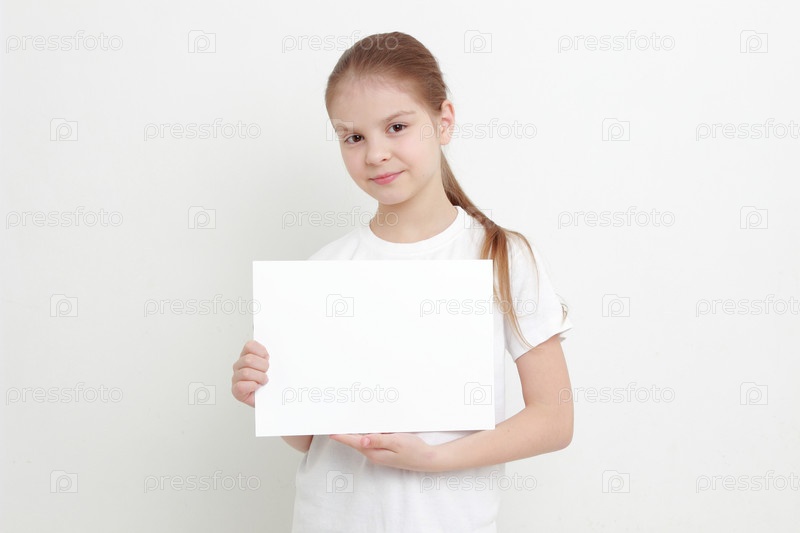 Маленькая девочка держит пустой белый лист