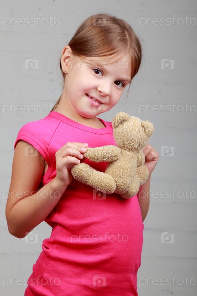 Милая девочка с плюшевым мешкой