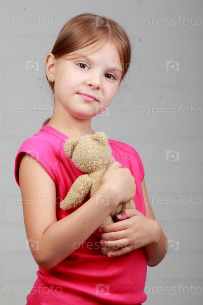 Милая девочка с плюшевым мешкой