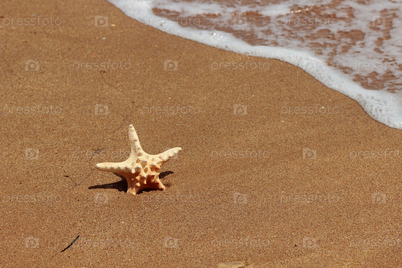 Морская звезда на берегу песчаного пляжа