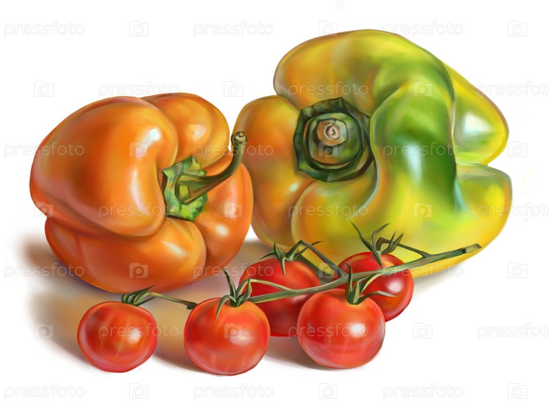 Болгарские перцы и веточка помидоров черри