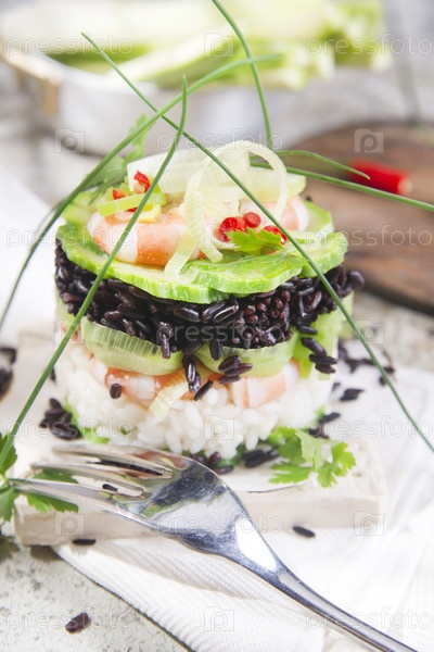 Черный и белый рис с креветками и цуккини