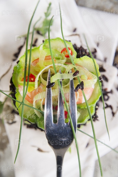 Черный и белый рис с креветками и цуккини