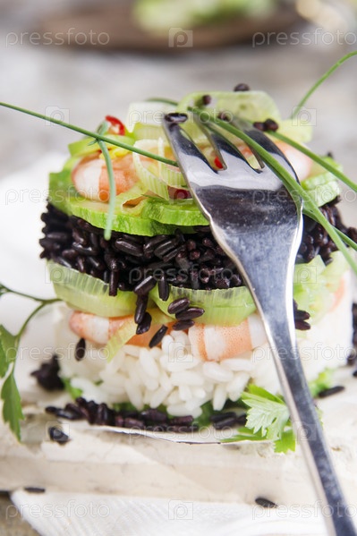 Черный и белый рис с креветками и цуккини