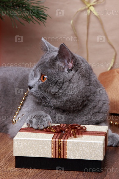 пушистый серый британский кот
