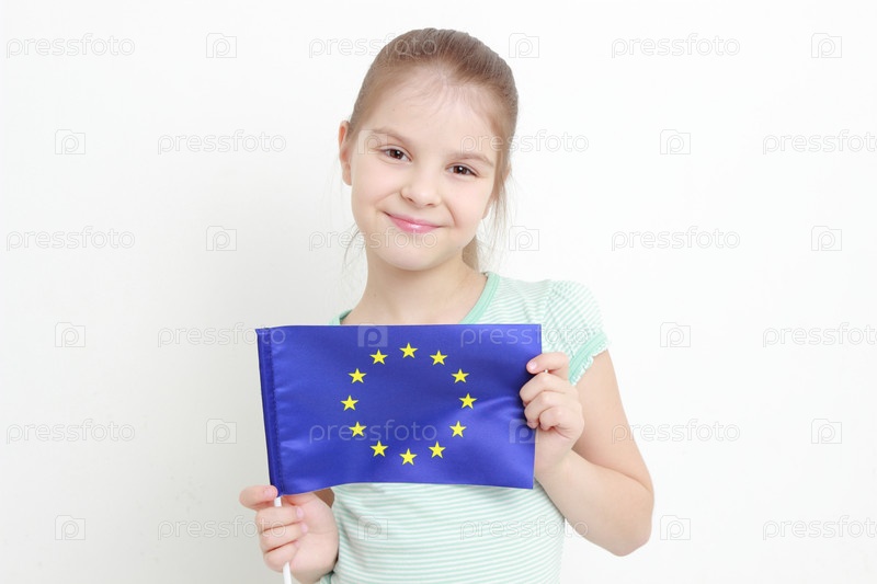 Симпатичная девочка в фартуке Европейского союза
