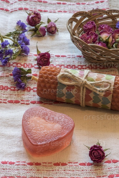 Сухие розы, мыло и свечи