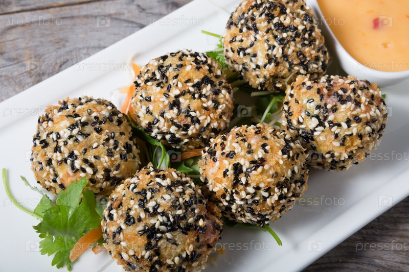 Шарики из мяса краба в темпуре