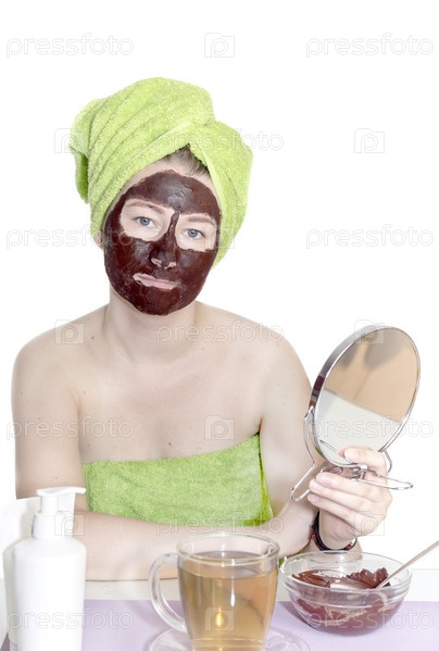 Девушка наносит шоколадную косметическую маску на лицо