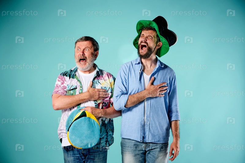 Два футбольных фанатов поют национальный гимн