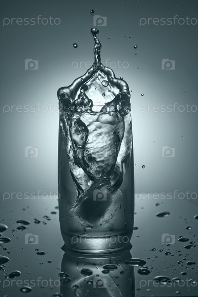 Брызги в стакане чистой холодной воды