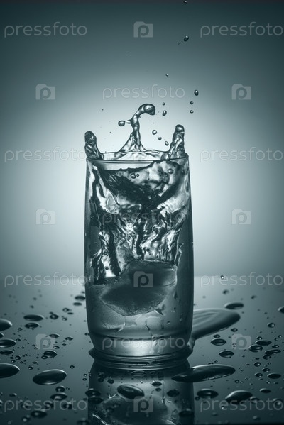 Брызги в стакане чистой холодной воды