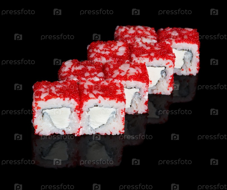 Суши роллы с мягким сыром и икрой летучей рыбы