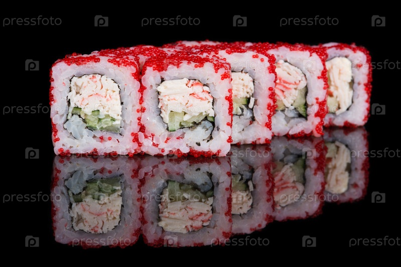 Суши роллы с крабовыми палочками и огурцом