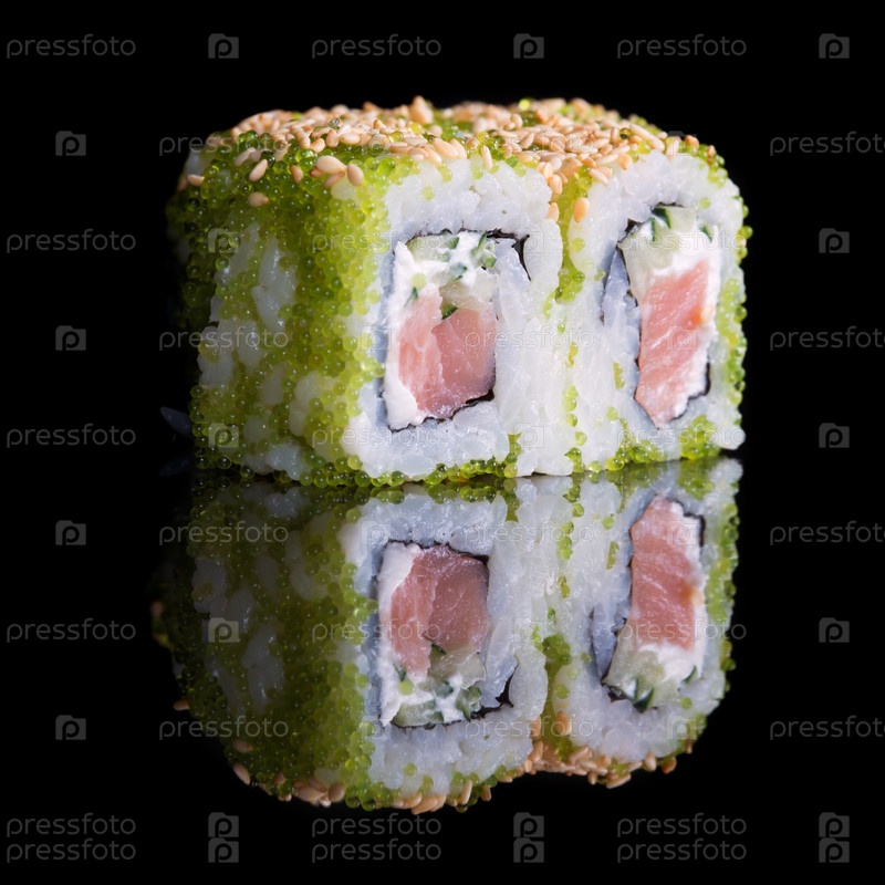 Роллы с лососем, огурцом и икрой летучей рыбы