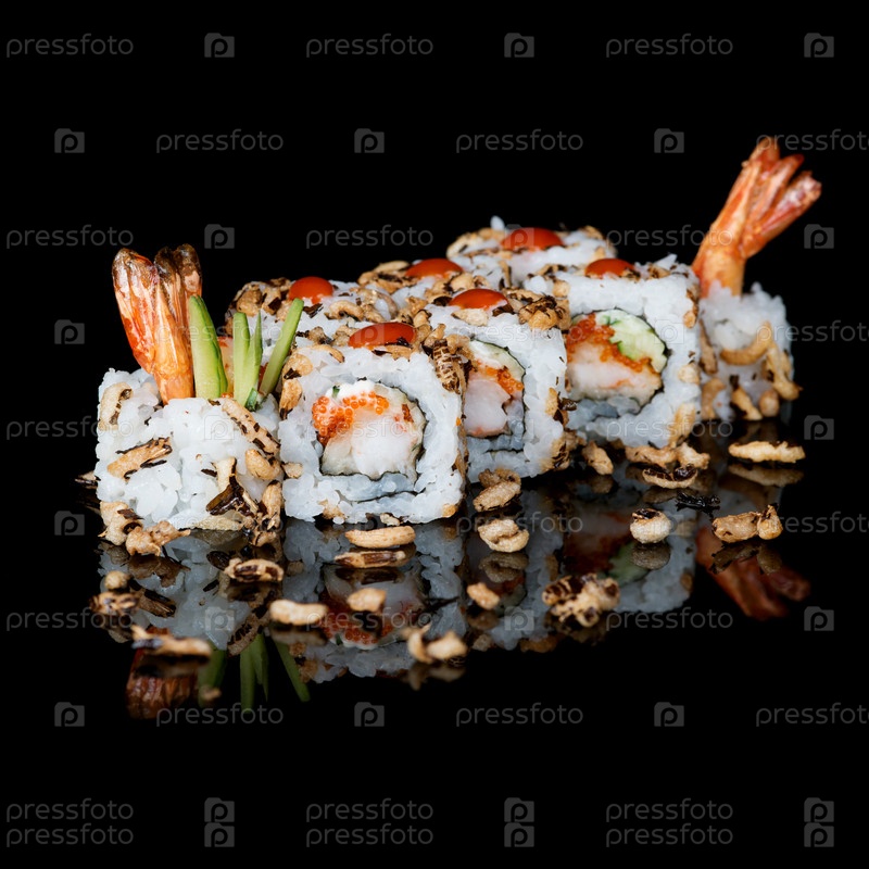 Суши роллы с креветками и огурцом