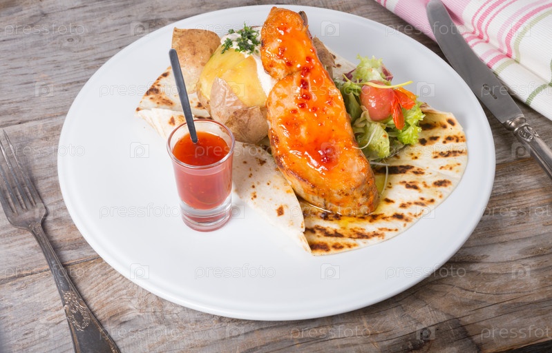 Стейк с соусом из красного Чили