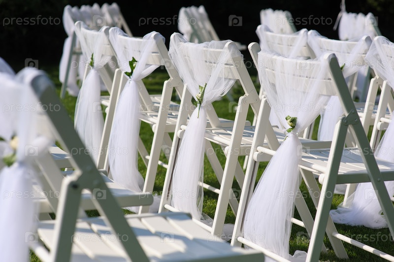Оформленные стулья на зеленой лужайке