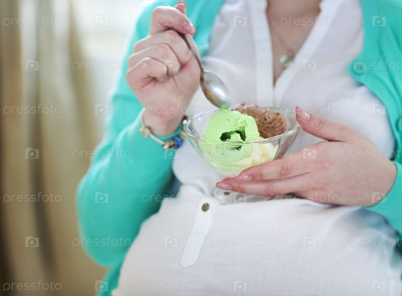 Беременная женщина с мороженым