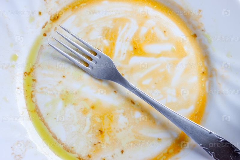 Пустое грязное блюдо с маслом
