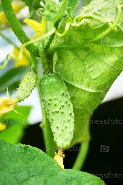 Огурцы с цветами на ветке