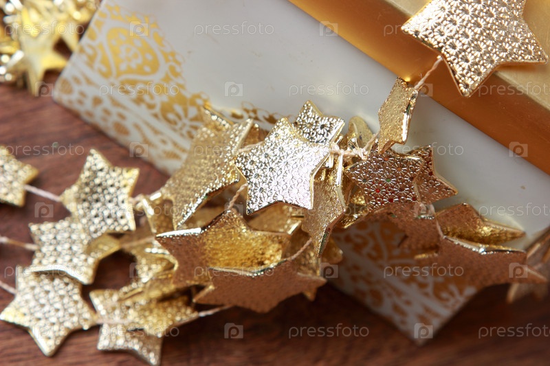 Рождественские украшения золотые звезды