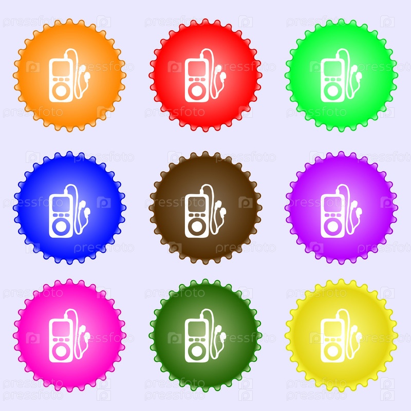 MP3-плеер, наушники, музыкальный значок