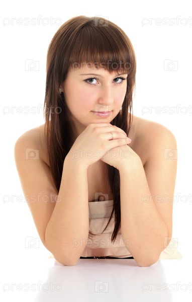 Красивая молодая женщина на белом фоне
