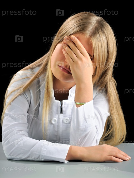 Уставшая блондинка на черном фоне