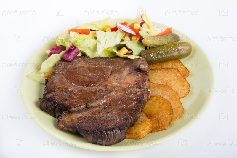 Стейк из говядины с салатом