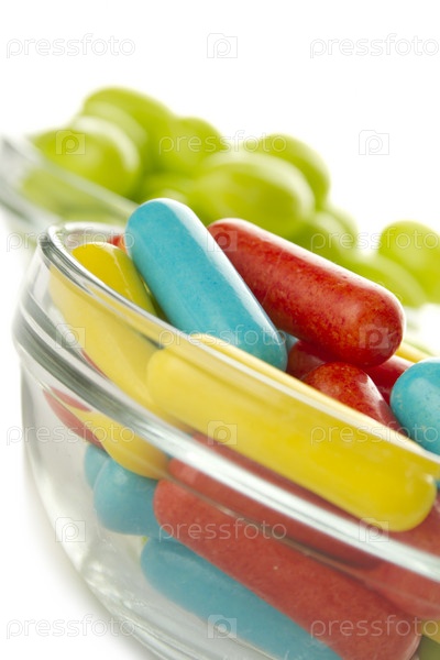 Красочные драже в стеклянных мисках