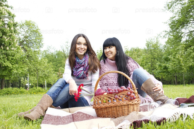 Молодая мать и дочь на пикнике