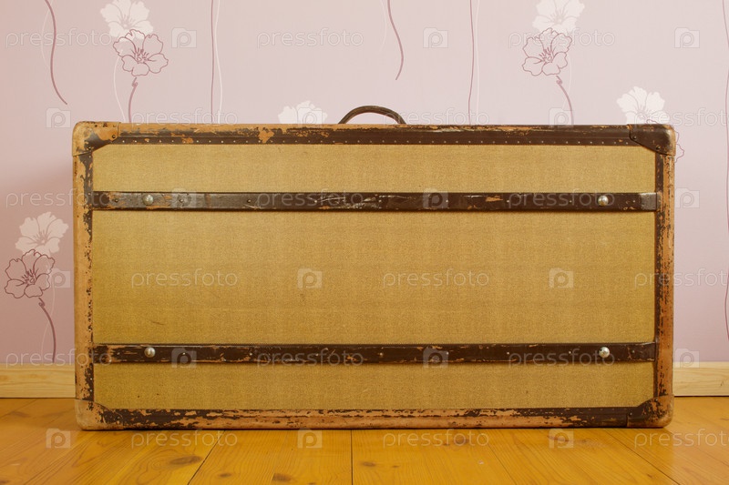Большой чемонан стоит на полу в комнате