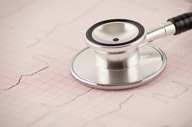 Медицинский стетоскоп на диаграмме электрокардиограммы