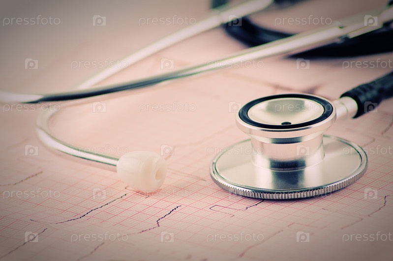 Медицинский стетоскоп на диаграмме электрокардиограммы