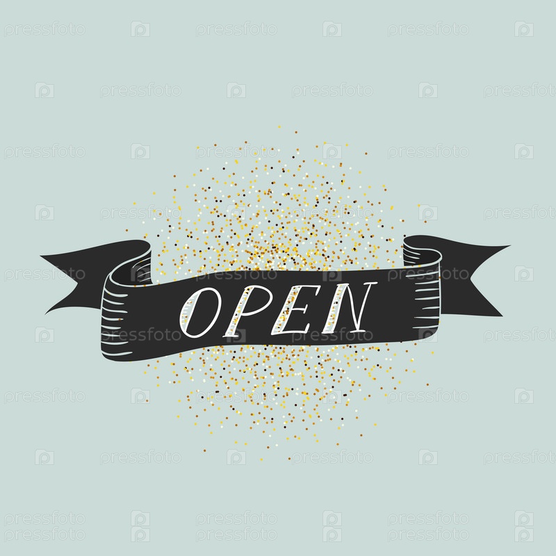 Золотой баннер с надписью «Открыто»