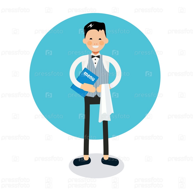 Молодой веселый официант