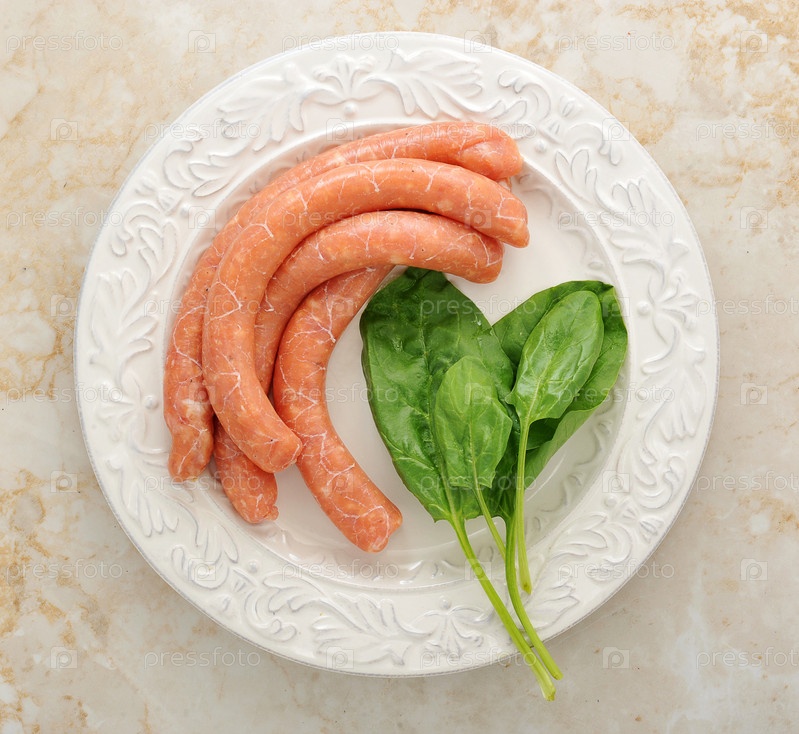 Сырые колбасы для барбекю со шпинатом