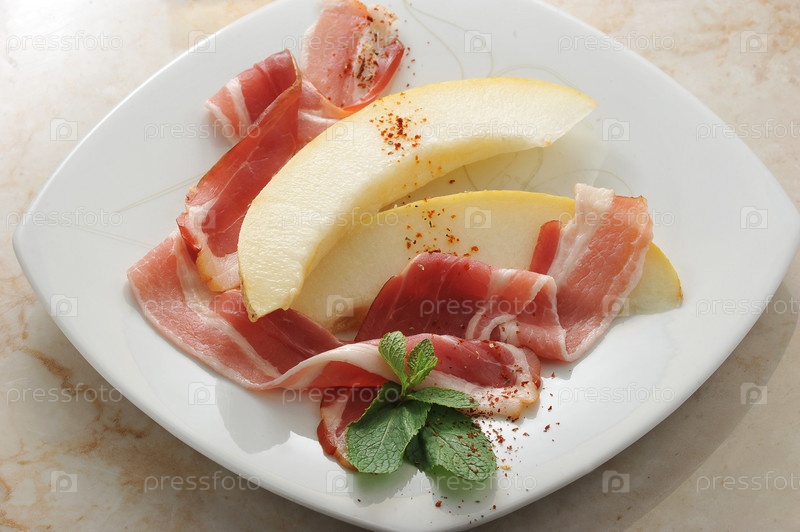 Кусочки дыни в беконе