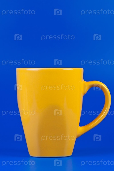 Ярко-желтая кружка на синем фоне