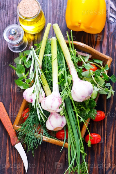 Чеснок и аромат травы