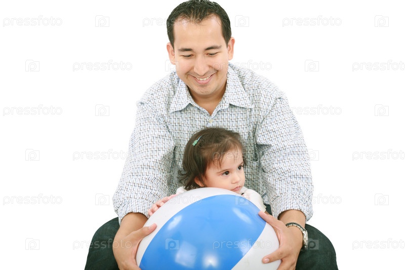 Отец с дочкой на белом фоне