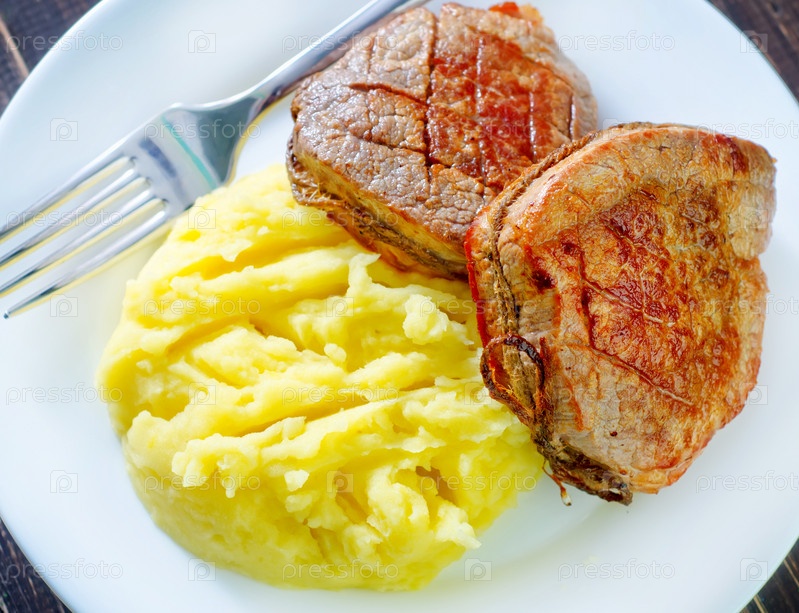 Картофельное пюре и жареное мясо