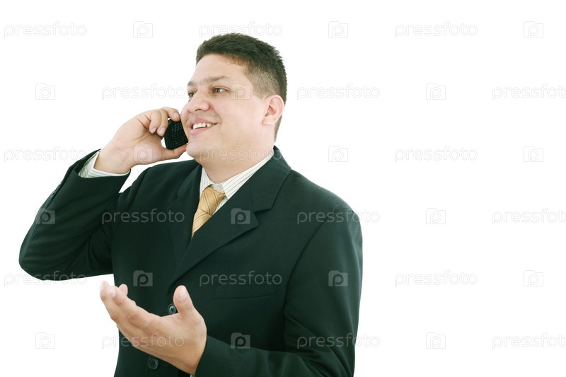 Деловой человек говорит по телефону, изолированный на белом фоне