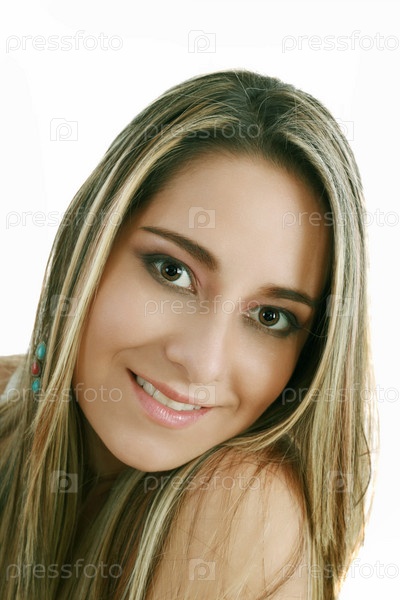 Красивая молодая женщина на белом фоне