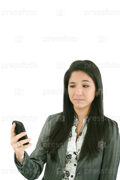 Девушка с телефоном на белом фоне
